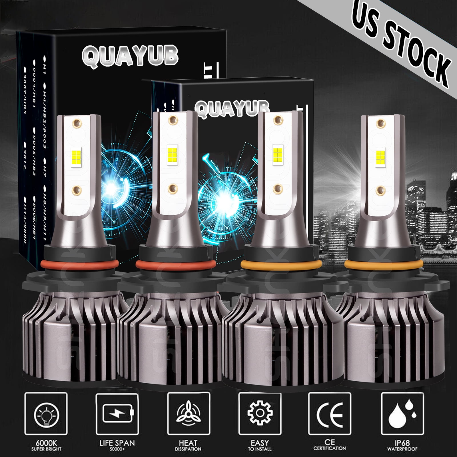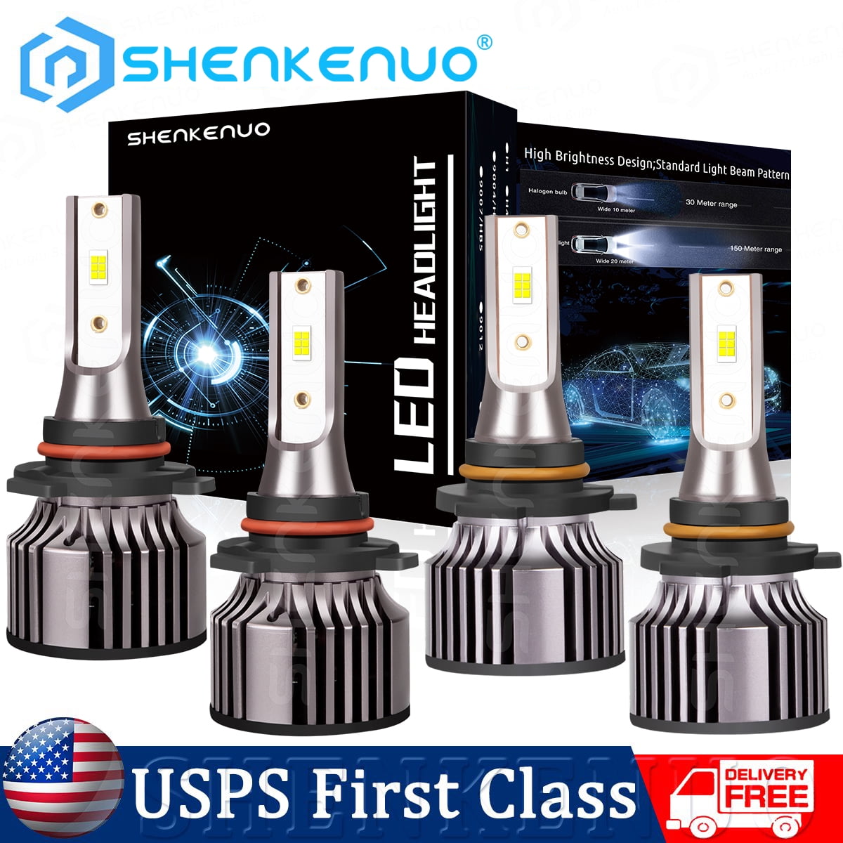 9005 9006 Led Headlights Kit Combo Bulbs 6500k High Low Beam Super White Bright Walmart Com